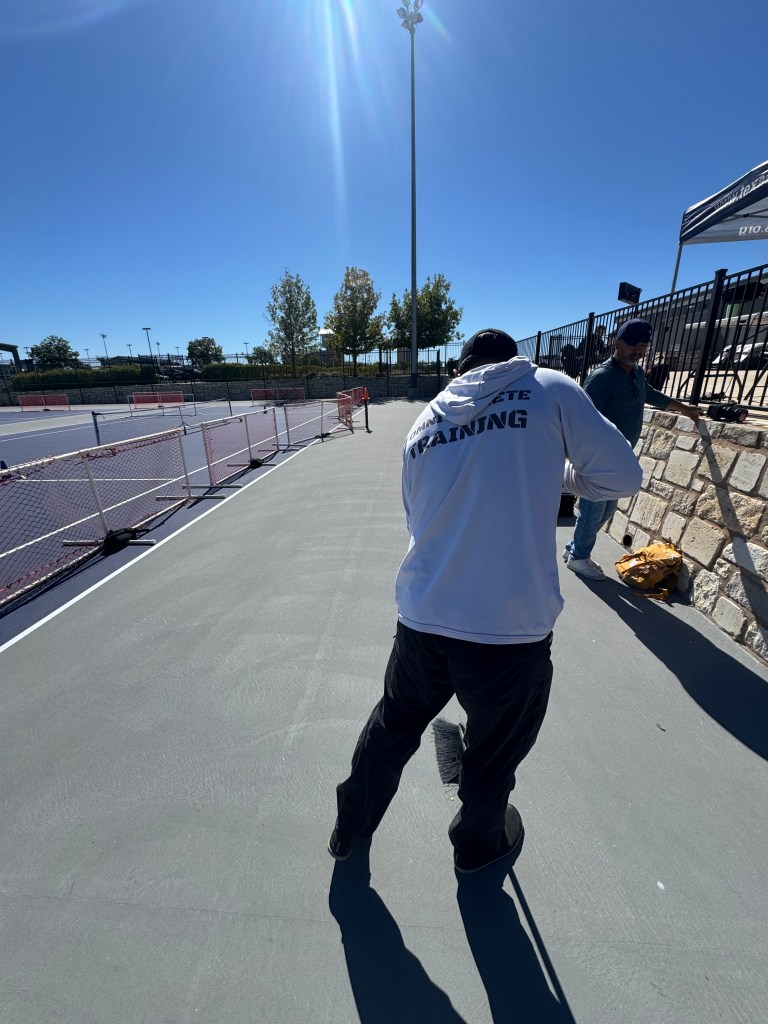 The morning of the effort, lead bossman George and I reviewed pacing strategies, organized the equipment, and set up the course for the day, moving barriers, picking up trash, and adjusting corners to make sure nothing would get in the way.